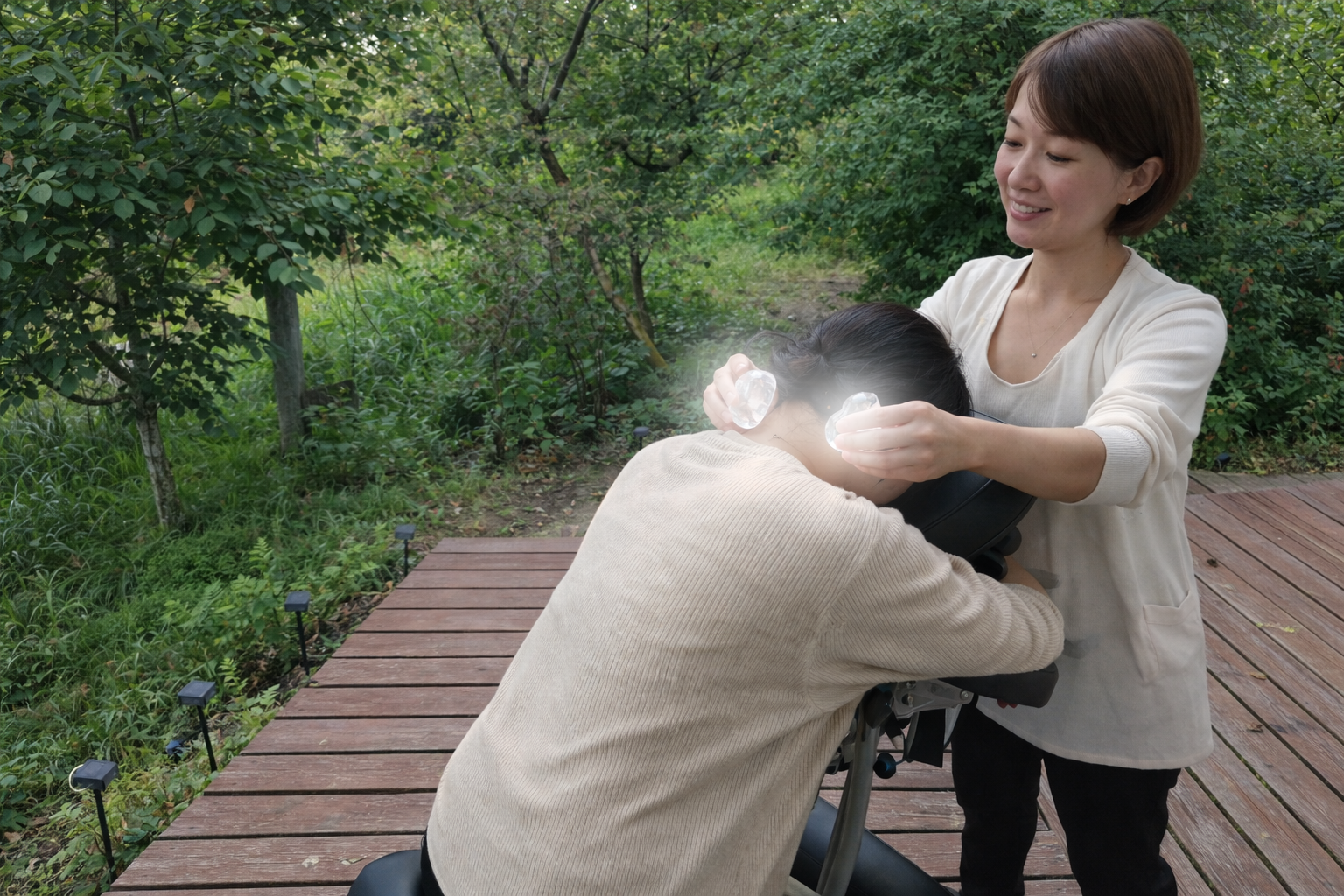 座った状態でありながら頭や肩だけでなく足までしっかり触れてくださるので、施術時間以上の満足感がありました。椅子に座ったまま受けられるのにここまで全身にアプローチできるのは本当にすごいと思います。